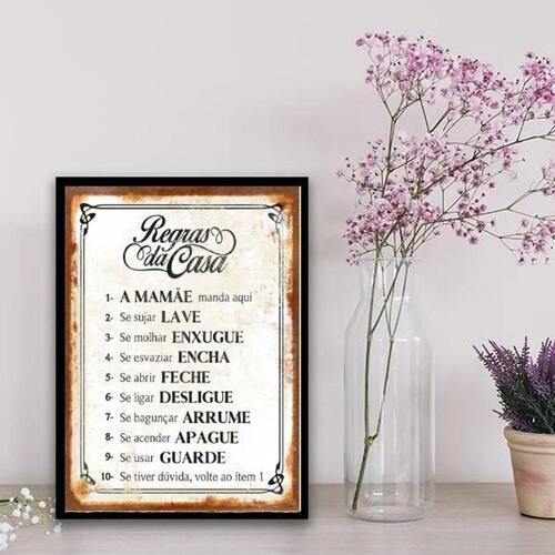 Quadro regras da casa 33x24cm - com vidro Moldura: madeira branca
