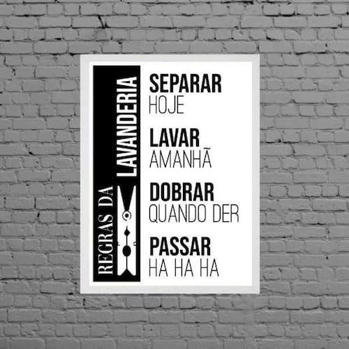Quadro Regras Da Lavanderia Humor 45X34Cm Moldura Branca