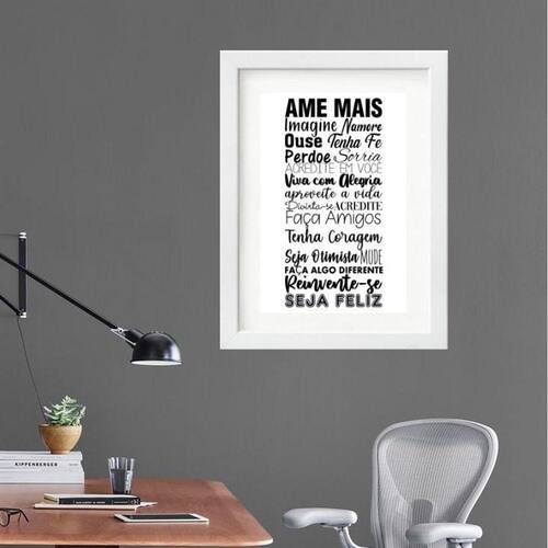 Quadro regras para ser feliz - 60x48cm Moldura: madeira preta Informações do produto tire todas as suas dúvidas no descritivo abaixo: decoração para quarto, sala, cozinha, escritório, área gourmet e muito mais. Chega de paredes vazias medidas - cada peça tem 60x48cm . Material do papel - papel fotográfico brilhante de altíssima resolução acabamento - todos os quadros são acompanhados de vidro para proteção da imagem. - moldura em madeira maciça na cor preta ou branca conforme produto escolhido e pendurador. - paspatur branco com 7cm de largura - os quadros são embalados de forma segura com plástico bolha com camada dupla de acordo com o tamanho dos quadros. Garantia - garantia de 3 meses. Meu quadro chegou. Como posso fixá-lo Você precisa apenas de um martelo e um prego, pois os quadros já vão acompanhados de penduradores. Esta é a forma mais indicada. Como posso limpar meu quadro A limpeza é feita como um móvel comum da sua casa. Apenas um pano seco ou espanador são suficientes para tal