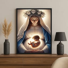 Quadro Religioso Católico Virgem Maria Gestante 24x18cm - com vidro - Cor: Moldura branca