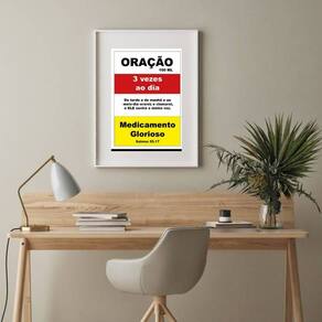 Quadro Remédio Oração - 60x48cm - Moldura: Madeira branca