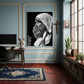 Quadro Retrato em Preto e Branco de Madre Teresa - 70x50cm - Cor: Moldura Branca