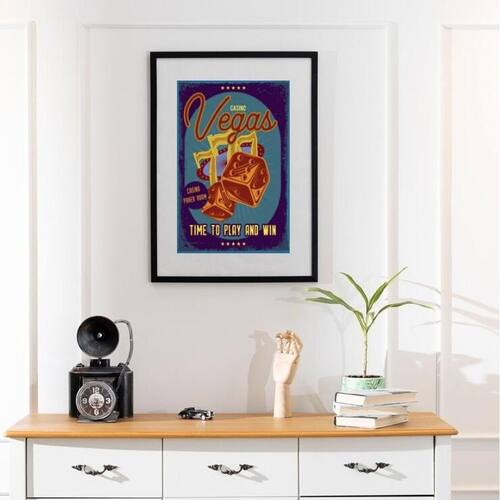 Quadro retrô cassino vegas - 60x48cm Cor: moldura branca Informações do produto tire todas as suas dúvidas no descritivo abaixo: decoração para quarto, sala, cozinha, escritório, área gourmet e muito mais. Chega de paredes vazias medidas - cada peça tem 60x48cm . Material do papel - papel fotográfico brilhante de altíssima resolução acabamento - todos os quadros são acompanhados de vidro para proteção da imagem. - moldura em madeira maciça na cor preta ou branca conforme produto escolhido e pendurador. - paspatur branco com 7cm de largura - os quadros são embalados de forma segura com plástico bolha com camada dupla de acordo com o tamanho dos quadros. - de 3 meses. Meu quadro chegou. Como posso fixá-lo Você precisa apenas de um martelo e um prego, pois os quadros já vão acompanhados de penduradores. Esta é a forma mais indicada. Como posso limpar meu quadro A limpeza é feita como um móvel comum da sua casa. Apenas um pano seco ou espanador são suficientes para tal Marca: Não Informado