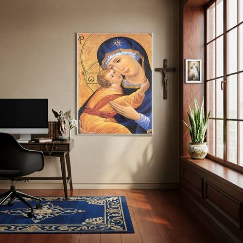 Quadro Sacro Maria e Menino Jesus - 70x50cm - Cor: Moldura Preta