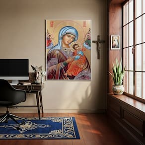 Quadro Sacro Nossa Senhora Perpétuo do Socorro - 70x50cm - Cor: Moldura Preta