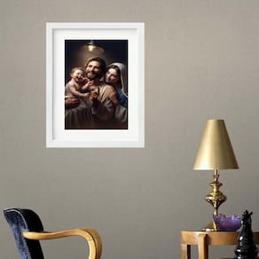 Quadro sagrada família feliz - 60x48cm Moldura: madeira preta Informações do produto tire todas as suas dúvidas no descritivo abaixo: decoração para quarto, sala, cozinha, escritório, área gourmet e muito mais. Chega de paredes vazias medidas - cada peça tem 60x48cm . Material do papel - papel fotográfico brilhante de altíssima resolução acabamento - todos os quadros são acompanhados de vidro para proteção da imagem. - moldura em madeira maciça na cor preta ou branca conforme produto escolhido e pendurador. - paspatur branco com 7cm de largura - os quadros são embalados de forma segura com plástico bolha com camada dupla de acordo com o tamanho dos quadros. Garantia - garantia de 3 meses. Meu quadro chegou. Como posso fixá-lo Você precisa apenas de um martelo e um prego, pois os quadros já vão acompanhados de penduradores. Esta é a forma mais indicada. Como posso limpar meu quadro A limpeza é feita como um móvel comum da sua casa. Apenas um pano seco ou espanador são suficientes para tal
