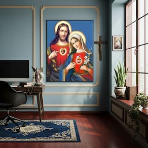 Quadro Sagrado Coração de Jesus e de Maria - 70x50cm - Cor: Moldura Branca