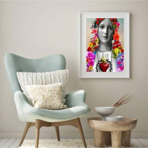 Quadro sagrado coração de maria com flores - 60x48cm Moldura: madeira branca Informações do produto tire todas as suas dúvidas no descritivo abaixo: decoração para quarto, sala, cozinha, escritório, área gourmet e muito mais. Chega de paredes vazias medidas - cada peça tem 60x48cm . Material do papel - papel fotográfico brilhante de altíssima resolução acabamento - todos os quadros são acompanhados de vidro para proteção da imagem. - moldura em madeira maciça na cor preta ou branca conforme produto escolhido e pendurador. - paspatur branco com 7cm de largura - os quadros são embalados de forma segura com plástico bolha com camada dupla de acordo com o tamanho dos quadros. Garantia - garantia de 3 meses. Meu quadro chegou. Como posso fixá-lo Você precisa apenas de um martelo e um prego, pois os quadros já vão acompanhados de penduradores. Esta é a forma mais indicada. Como posso limpar meu quadro A limpeza é feita como um móvel comum da sua casa. Apenas um pano seco ou espanador são suficientes para tal Ean: 7894426942265