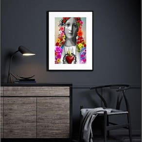 Quadro sagrado coração de maria com flores - 60x48cm