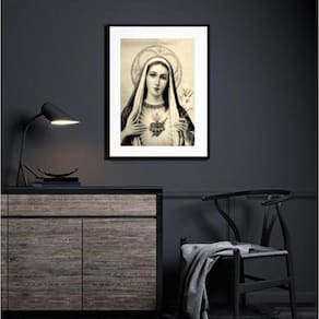 Quadro sagrado coração de maria preto e branco - 60x48cm Moldura: madeira preta Informações do produto tire todas as suas dúvidas no descritivo abaixo: decoração para quarto, sala, cozinha, escritório, área gourmet e muito mais. Chega de paredes vazias medidas - cada peça tem 60x48cm . Material do papel - papel fotográfico brilhante de altíssima resolução acabamento - todos os quadros são acompanhados de vidro para proteção da imagem. - moldura em madeira maciça na cor preta ou branca conforme produto escolhido e pendurador. - paspatur branco com 7cm de largura - os quadros são embalados de forma segura com plástico bolha com camada dupla de acordo com o tamanho dos quadros. Garantia - garantia de 3 meses. Meu quadro chegou. Como posso fixá-lo Você precisa apenas de um martelo e um prego, pois os quadros já vão acompanhados de penduradores. Esta é a forma mais indicada. Como posso limpar meu quadro A limpeza é feita como um móvel comum da sua casa. Apenas um pano seco ou espanador são suficientes para tal Ean: 7895802359851