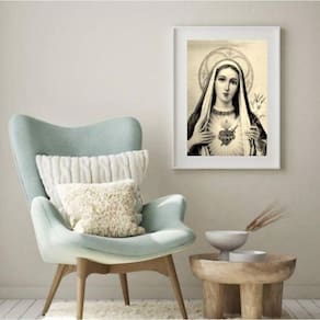 Quadro Sagrado Coração De Maria Preto E Branco - 60X48Cm