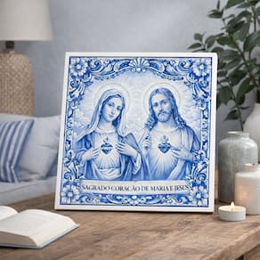 Quadro Sagrado Coração Maria Jesus 33x33cm Mold Branca