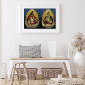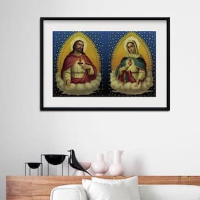Quadro sagradro coração de jesus e maria - 60x48cm Moldura: madeira preta Informações do produto tire todas as suas dúvidas no descritivo abaixo: decoração para quarto, sala, cozinha, escritório, área gourmet e muito mais. Chega de paredes vazias medidas - cada peça tem 60x48cm . Material do papel - papel fotográfico brilhante de altíssima resolução acabamento - todos os quadros são acompanhados de vidro para proteção da imagem. - moldura em madeira maciça na cor preta ou branca conforme produto escolhido e pendurador. - paspatur branco com 7cm de largura - os quadros são embalados de forma segura com plástico bolha com camada dupla de acordo com o tamanho dos quadros. Garantia - garantia de 3 meses. Meu quadro chegou. Como posso fixá-lo Você precisa apenas de um martelo e um prego, pois os quadros já vão acompanhados de penduradores. Esta é a forma mais indicada. Como posso limpar meu quadro A limpeza é feita como um móvel comum da sua casa. Apenas um pano seco ou espanador são suficientes para tal