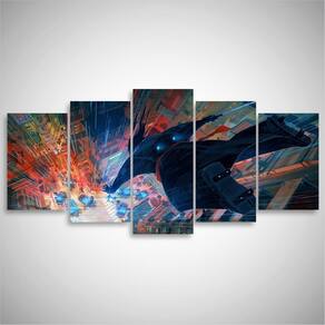 Quadro Samurai Jack Animes Dimensões do Produto: Tamanho total do produto: 125x60 cm Comprimento x Altura 02 Peças menores: 25x40 cm 02 Peças Médias: 25x50 cm 01 Peça Central: 25x60 cm. Espaçamento entre as peças de 1 cm - Tamanho total com espaçamentos 129x60 cm. Espessura do produto - 9 mm