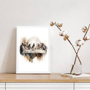 Quadro santa ceia aquarela 24x18cm Moldura: madeira branca Informações do produto tire todas as suas dúvidas no descritivo abaixo: decoração para quarto, sala, cozinha, escritório, área gourmet e muito mais. Chega de paredes vazias medidas - cada peça tem 24x18cm a5 . Material do papel - papel fotográfico brilhante de altíssima resolução acabamento - todos os quadros são acompanhados de uma película de acetato para proteção da imagem. - os quadros são embalados de forma segura com plástico bolha com camada dupla de acordo com o tamanho dos quadros. Garantia - garantia de 3 meses. Meu quadro chegou. Como posso fixá-lo Você precisa apenas de um martelo e um prego, pois os quadros já vão acompanhados de penduradores. Esta é a forma mais indicada. Caso prefira, você pode utilizar uma fita dupla face neste caso, sugerimos de alta qualidade para evitar que descole e seu quadro caia . Como posso limpar meu quadro A limpeza é feita como um móvel comum da sua casa. Apenas um pano seco ou espanador são suficientes para tal