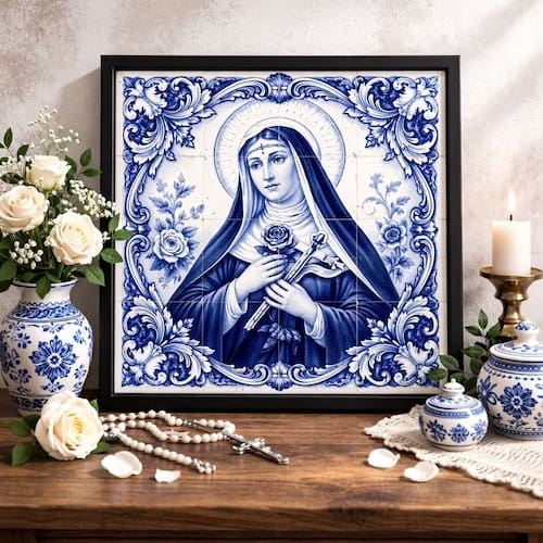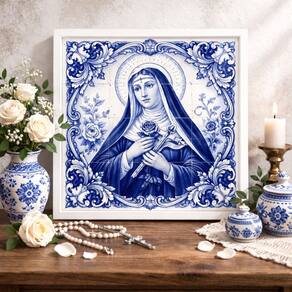 Quadro Santa Rita Cássia Tema Azulejo 33x33 MoldBrancaVidro