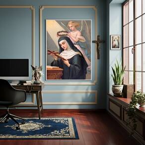 Quadro Santa Rita de Cássia das Causas Impossíveis - 70x50cm - Cor: Moldura Branca