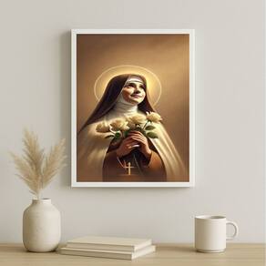 Quadro Santa Teresinha Das Rosas 24x18cm - Cor: Moldura preta