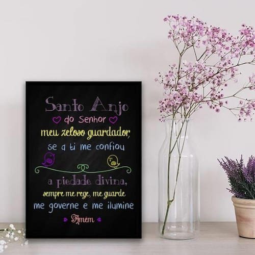 Quadro santo anjo do senhor colorido 24x18cm Moldura: madeira branca Informações do produtoDecoração para quarto, sala, cozinha, escritório, área gourmet e muito mais.Chega de paredes vazias Medidas - cada peça tem 24x18cm a5 .Material do papel - papel fotográfico brilhante de altíssima resolução Acabamento - todos os quadros são acompanhados de uma película de acetato para proteção da imagem. - os quadros são embalados de forma segura com plástico bolha com camada dupla de acordo com o tamanho dos quadros. Garantia - garantia de 3 meses. Meu quadro chegou. Como posso fixá-lo Você precisa apenas de um martelo e um prego, pois os quadros já vão acompanhados de penduradores. Esta é a forma mais indicada. Caso prefira, você pode utilizar uma fita dupla face neste caso, sugerimos de alta qualidade para evitar que descole e seu quadro caia . Como posso limpar meu quadro A limpeza é feita como um móvel comum da sua casa. Apenas um pano seco ou espanador são suficientes para tal