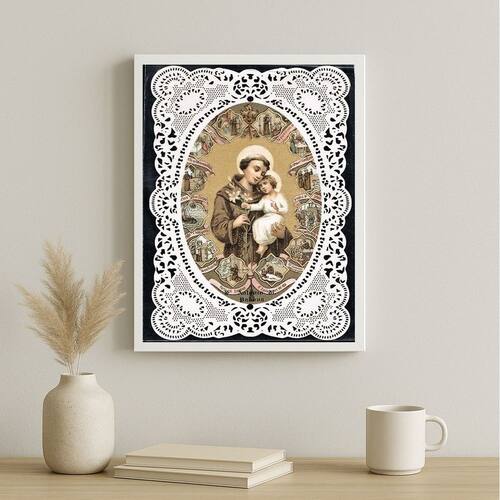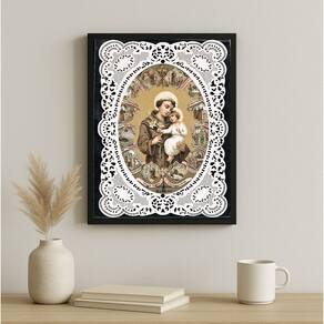Quadro Santo Antônio Vintage - Renda 45x34cm - Cor: Moldura preta