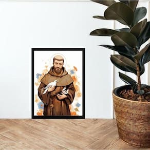 Quadro são francisco de assis - aquarela 33x24cm Moldura: madeira branca Informações do produto tire todas as suas dúvidas no descritivo abaixo: decoração para quarto, sala, cozinha, escritório, área gourmet e muito mais. Chega de paredes vazias medidas - cada peça tem 33x24cm a4 . Material do papel - papel fotográfico brilhante de altíssima resolução acabamento - todos os quadros são acompanhados de uma película de acetato para proteção da imagem. - os quadros são embalados de forma segura com plástico bolha com camada dupla de acordo com o tamanho dos quadros. Garantia - garantia de 3 meses. Meu quadro chegou. Como posso fixá-lo Você precisa apenas de um martelo e um prego, pois os quadros já vão acompanhados de penduradores. Esta é a forma mais indicada. Caso prefira, você pode utilizar uma fita dupla face neste caso, sugerimos de alta qualidade para evitar que descole e seu quadro caia . Como posso limpar meu quadro A limpeza é feita como um móvel comum da sua casa. Apenas um pano seco ou espanador são suficientes para tal