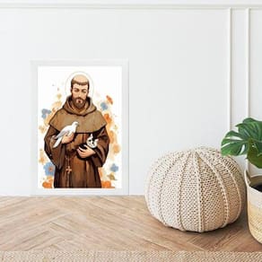 Quadro são francisco de assis - aquarela 45x34cm Moldura: madeira branca Informações do produto tire todas as suas dúvidas no descritivo abaixo: decoração para quarto, sala, cozinha, escritório, área gourmet e muito mais. Chega de paredes vazias. Medidas - cada peça tem 45x34cm a3 . Material do papel - papel fotográfico brilhante de altíssima resolução acabamento - todos os quadros são acompanhados de uma película de acetato para proteção da imagem. - os quadros são embalados de forma segura com plástico bolha com camada dupla de acordo com o tamanho dos quadros. Garantia - garantia de 3 meses. Meu quadro chegou. Como posso fixá-lo Você precisa apenas de um martelo e um prego, pois os quadros já vão acompanhados de penduradores. Esta é a forma mais indicada. Caso prefira, você pode utilizar uma fita dupla face neste caso, sugerimos de alta qualidade para evitar que descole e seu quadro caia . Como posso limpar meu quadro A limpeza é feita como um móvel comum da sua casa. Apenas um pano seco ou espanador são suficientes para tal