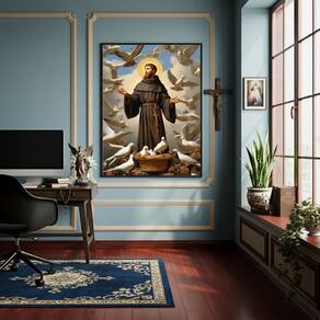 Quadro São Francisco de Assis Padroeiro da Natureza -70x50cm - Cor: Moldura Branca