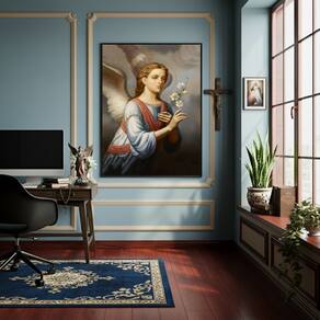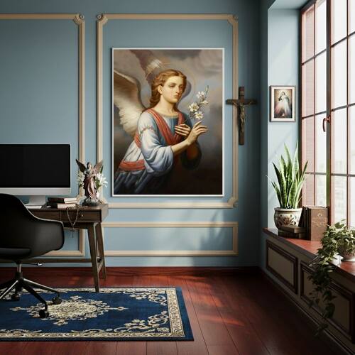 Quadro São Gabriel Arcanjo O Mensageiro de Deus- 70x50cm - Cor: Moldura Branca