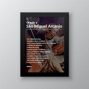 O Quadro Oração a São Miguel Arcanjo 24x18cm - Com Vidro é perfeito para quem busca uma decoração única e cheia de significado. Com moldura de madeira branca, esse quadro é ideal para compor diversos ambientes, como quarto, sala, cozinha, escritório, área gourmet e muito mais. Com medidas de 24x18cm A5 , esse quadro é produzido em papel fotográfico brilhante de altíssima resolução, garantindo uma imagem nítida e de qualidade. Além disso, todos os quadros acompanham vidro para proteção da imagem, garantindo maior durabilidade e preservação da arte. A moldura em madeira maciça na cor preta confere um design elegante e sofisticado ao quadro, se adaptando perfeitamente a diferentes estilos de decoração. Além disso, o quadro já vem com pendurador, facilitando a sua fixação na parede. Ao adquirir o Quadro Oração a São Miguel Arcanjo 24x18cm - Com Vidro, você terá uma de 3 meses, garantindo a sua tranquilidade e satisfação com o produto. A marca do quadro é reconhecida por sua qualidade e cuidado em cada detalhe. Com anos de experiência no mercado, a marca se destaca pela sua preocupação em oferecer produtos duráveis e de alta qualidade. Agora, vamos esclarecer algumas dúvidas frequentes sobre o produto: 1. Meu quadro chegou. Como posso fixá-lo? Para fixar o quadro, você precisará apenas de um martelo e um prego, pois os quadros já vão acompanhados de penduradores. Essa é a forma mais indicada e simples de fixação. 2. Como posso limpar meu quadro? A limpeza do quadro é muito simples. Basta utilizar um pano seco ou espanador, assim como você faria com qualquer outro móvel da sua casa. Evite o uso de produtos químicos ou abrasivos, pois eles podem danificar a imagem ou a moldura. Adquira agora mesmo o Quadro Oração a São Miguel Arcanjo 24x18cm - Com Vidro e garanta uma decoração única e cheia de estilo para o seu ambiente. Não perca essa oportunidade de ter um produto de qualidade e com um significado especial. Marca: Não Informado