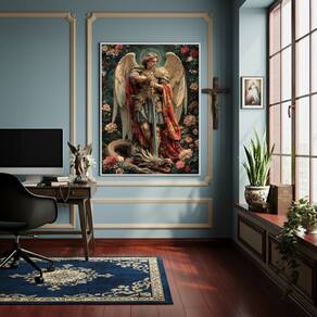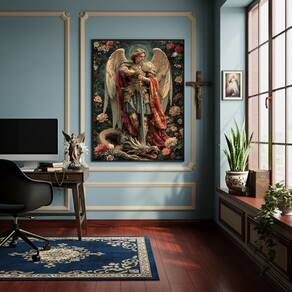 Quadro São Miguel Arcanjo Defensor Contra o Mal - 70x50cm - Cor: Moldura Preta