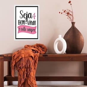 Quadro seja bem vindo e volte sempre 33x24cm Cor: moldura preta Informações do produto tire todas as suas dúvidas no descritivo abaixo: decoração para quarto, sala, cozinha, escritório, área gourmet e muito mais. Chega de paredes vazias medidas - cada peça tem 33x24cm a4 . Material do papel - papel fotográfico brilhante de altíssima resolução acabamento - todos os quadros são acompanhados de uma película de acetato para proteção da imagem. - os quadros são embalados de forma segura com plástico bolha com camada dupla de acordo com o tamanho dos quadros. Garantia - garantia de 3 meses. Meu quadro chegou. Como posso fixá-lo Você precisa apenas de um martelo e um prego, pois os quadros já vão acompanhados de penduradores. Esta é a forma mais indicada. Caso prefira, você pode utilizar uma fita dupla face neste caso, sugerimos de alta qualidade para evitar que descole e seu quadro caia . Como posso limpar meu quadro A limpeza é feita como um móvel comum da sua casa. Apenas um pano seco ou espanador são suficientes para tal