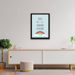 Quadro seja o arco-íris da nuvem de alguém 24x18cm Moldura: madeira preta Informações do produto tire todas as suas dúvidas no descritivo abaixo: decoração para quarto, sala, cozinha, escritório, área gourmet e muito mais. Chega de paredes vazias medidas - cada peça tem 24x18cm a5 . Material do papel - papel fotográfico brilhante de altíssima resolução acabamento - todos os quadros são acompanhados de uma película de acetato para proteção da imagem. - moldura em madeira maciça na cor branca e pendurador móvel que pode ser retirado facilmente caso deseje fixar com fita dupla face. - os quadros são embalados de forma segura com plástico bolha com camada dupla de acordo com o tamanho dos quadros. - de 3 meses prazo de envio pedimos 24 horas úteis no máximo para enviar seu pedido após o envio, segue os prazos normais dos correios, cerca de 7 exceto para norte e nordeste, que pode ser de até 14 . Em diversas cidades, este prazo normalmente é reduzido, mas depende do prazo dos correios. Meu quadro chegou. Como posso fixá-lo Você precisa apenas de um martelo e um prego, pois os quadros já vão acompanhados de penduradores. Esta é a forma mais indicada. Caso prefira, você pode utilizar uma fita dupla face neste caso, sugerimos de alta qualidade para evitar que descole e seu quadro caia . Como posso limpar meu quadro A limpeza é feita como um móvel comum da sua casa. Apenas um pano seco ou espanador são suficientes para tal Marca: Não Informado