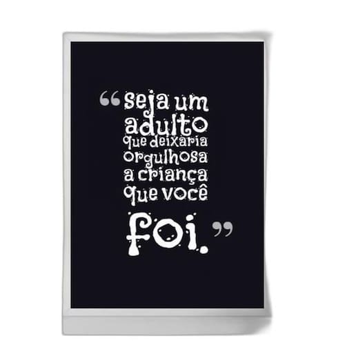Quadro seja o orgulho de uma criança 45x34cm Moldura: madeira branca Informações do produto Decoração para quarto, sala, cozinha, escritório, área gourmet e muito mais. Chega de paredes vazias. Medidas - cada peça tem 45x34cm a3 . Material do papel - papel fotográfico brilhante de altíssima resolução Acabamento - todos os quadros são acompanhados de uma película de acetato para proteção da imagem. - os quadros são embalados de forma segura com plástico bolha com camada dupla de acordo com o tamanho dos quadros. - de 3 meses. Meu quadro chegou. Como posso fixá-lo Você precisa apenas de um martelo e um prego, pois os quadros já vão acompanhados de penduradores. Esta é a forma mais indicada. Caso prefira, você pode utilizar uma fita dupla face neste caso, sugerimos de alta qualidade para evitar que descole e seu quadro caia . Como posso limpar meu quadro A limpeza é feita como um móvel comum da sua casa. Apenas um pano seco ou espanador são suficientes para tal Marca: Não Informado