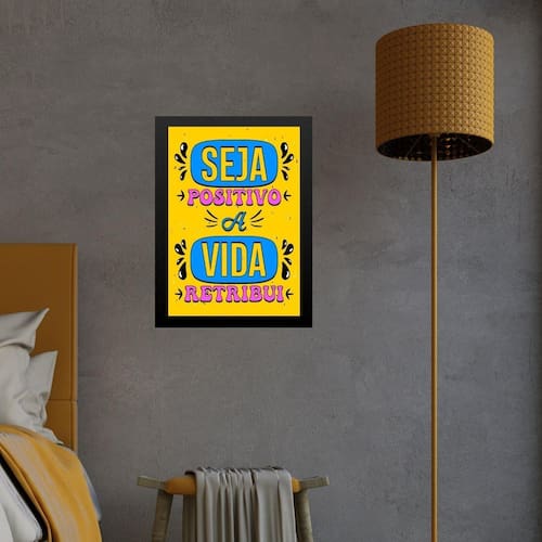 Quadro seja positivo a vida retribui 33x24cm - com vidro Cor: moldura preta Informações do produto tire todas as suas dúvidas no descritivo abaixo: decoração para quarto, sala, cozinha, escritório, área gourmet e muito mais. Chega de paredes vazias medidas - cada peça tem 33x24cm a4 . Material do papel - papel fotográfico brilhante de altíssima resolução acabamento - todos os quadros são acompanhados de vidro para proteção da imagem. - moldura em madeira maciça na cor preta ou branca conforme produto escolhido e pendurador . - os quadros são embalados de forma segura com plástico bolha com camada dupla de acordo com o tamanho dos quadros. - de 3 meses. Meu quadro chegou. Como posso fixá-lo Você precisa apenas de um martelo e um prego, pois os quadros já vão acompanhados de penduradores. Esta é a forma mais indicada. Como posso limpar meu quadro A limpeza é feita como um móvel comum da sua casa. Apenas um pano seco ou espanador são suficientes para tal