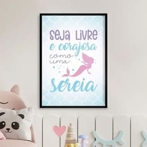 Quadro sereia - seja livre e corajosa 45x34cm Cor: moldura branca Informações do produto tire todas as suas dúvidas no descritivo abaixo: decoração para quarto, sala, cozinha, escritório, área gourmet e muito mais. Chega de paredes vazias. Medidas - cada peça tem 45x34cm a3 . Material do papel - papel fotográfico brilhante de altíssima resolução acabamento - todos os quadros são acompanhados de uma película de acetato para proteção da imagem. - os quadros são embalados de forma segura com plástico bolha com camada dupla de acordo com o tamanho dos quadros. - de 3 meses. Meu quadro chegou. Como posso fixá-lo Você precisa apenas de um martelo e um prego, pois os quadros já vão acompanhados de penduradores. Esta é a forma mais indicada. Caso prefira, você pode utilizar uma fita dupla face neste caso, sugerimos de alta qualidade para evitar que descole e seu quadro caia . Como posso limpar meu quadro A limpeza é feita como um móvel comum da sua casa. Apenas um pano seco ou espanador são suficientes para tal
