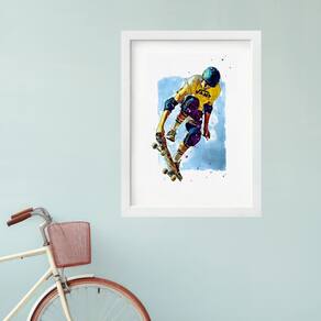Quadro skate menino skater - 60x48cm Cor: moldura branca Informações do produto tire todas as suas dúvidas no descritivo abaixo: decoração para quarto, sala, cozinha, escritório, área gourmet e muito mais. Chega de paredes vazias medidas - cada peça tem 60x48cm . Material do papel - papel fotográfico brilhante de altíssima resolução acabamento - todos os quadros são acompanhados de vidro para proteção da imagem. - moldura em madeira maciça na cor preta ou branca conforme produto escolhido e pendurador. - paspatur branco com 7cm de largura - os quadros são embalados de forma segura com plástico bolha com camada dupla de acordo com o tamanho dos quadros. - de 3 meses. Meu quadro chegou. Como posso fixá-lo Você precisa apenas de um martelo e um prego, pois os quadros já vão acompanhados de penduradores. Esta é a forma mais indicada. Como posso limpar meu quadro A limpeza é feita como um móvel comum da sua casa. Apenas um pano seco ou espanador são suficientes para tal