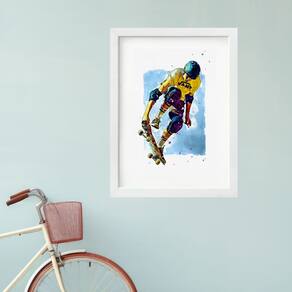 Quadro Skate Menino Skater - 60x48cm - Cor: Moldura Branca