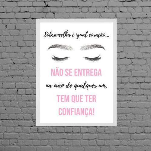 Quadro sobrancelha é igual coração - salão 24x18cm Moldura: madeira branca Informações do produto tire todas as suas dúvidas no descritivo abaixo: decoração para quarto, sala, cozinha, escritório, área gourmet e muito mais. Chega de paredes vazias medidas - cada peça tem 24x18cm a5 .