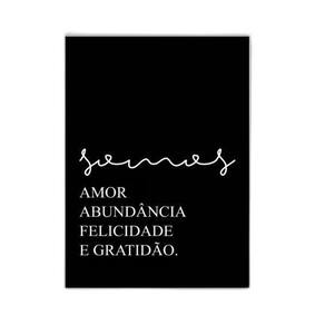 Quadro somos amor abundância felicidade gratidão 45x34cm - com vidro Moldura: madeira preta Informações do produto tire todas as suas dúvidas no descritivo abaixo: decoração para quarto, sala, cozinha, escritório, área gourmet e muito mais. Chega de paredes vazias medidas - cada peça tem 45x34cm a3 . Material do papel - papel fotográfico brilhante de altíssima resolução acabamento - todos os quadros são acompanhados de vidro para proteção da imagem. - moldura em madeira maciça na cor preta e pendurador . - os quadros são embalados de forma segura com plástico bolha com camada dupla de acordo com o tamanho dos quadros. - de 3 meses. Meu quadro chegou. Como posso fixá-lo Você precisa apenas de um martelo e um prego, pois os quadros já vão acompanhados de penduradores. Esta é a forma mais indicada. Como posso limpar meu quadro A limpeza é feita como um móvel comum da sua casa. Apenas um pano seco ou espanador são suficientes para tal Marca: Não Informado
