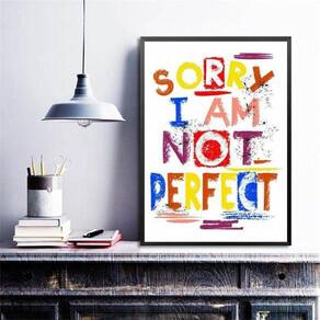 Quadro sorry i am not perfect 33x24cm - com vidro Moldura: madeira preta Informações do produto tire todas as suas dúvidas no descritivo abaixo: decoração para quarto, sala, cozinha, escritório, área gourmet e muito mais. Chega de paredes vazias medidas - cada peça tem 33x24cm a4 . Material do papel - papel fotográfico brilhante de altíssima resolução acabamento - todos os quadros são acompanhados de vidro para proteção da imagem. - moldura em madeira maciça na cor preta ou branca conforme produto escolhido e pendurador . - os quadros são embalados de forma segura com plástico bolha com camada dupla de acordo com o tamanho dos quadros. Garantia - garantia de 3 meses. Meu quadro chegou. Como posso fixá-lo Você precisa apenas de um martelo e um prego, pois os quadros já vão acompanhados de penduradores. Esta é a forma mais indicada. Como posso limpar meu quadro A limpeza é feita como um móvel comum da sua casa. Apenas um pano seco ou espanador são suficientes para tal Ean: 7890072151389