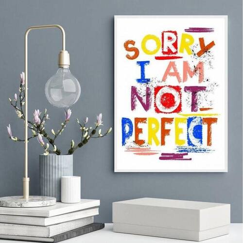 Quadro sorry i am not perfect 45x34cm - com vidro Moldura: madeira preta Informações do produto tire todas as suas dúvidas no descritivo abaixo: decoração para quarto, sala, cozinha, escritório, área gourmet e muito mais. Chega de paredes vazias medidas - cada peça tem 45x34cm a3 . Material do papel - papel fotográfico brilhante de altíssima resolução acabamento - todos os quadros são acompanhados de vidro para proteção da imagem. - moldura em madeira maciça na cor preta ou branca conforme produto escolhido e pendurador . - os quadros são embalados de forma segura com plástico bolha com camada dupla de acordo com o tamanho dos quadros. Garantia - garantia de 3 meses. Meu quadro chegou. Como posso fixá-lo Você precisa apenas de um martelo e um prego, pois os quadros já vão acompanhados de penduradores. Esta é a forma mais indicada. Como posso limpar meu quadro A limpeza é feita como um móvel comum da sua casa. Apenas um pano seco ou espanador são suficientes para tal Ean: 7898831575773