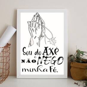 Quadro sou do axé não nego minha fé 24x18cm - com vidro Moldura: madeira preta Informações do produto tire todas as suas dúvidas no descritivo abaixo: decoração para quarto, sala, cozinha, escritório, área gourmet e muito mais. Chega de paredes vazias medidas - cada peça tem 24x18cm a5 . Material do papel - papel fotográfico brilhante de altíssima resolução acabamento - todos os quadros são acompanhados de vidro para proteção da imagem. - moldura em madeira maciça na cor preta ou branca conforme produto escolhido e pendurador . - os quadros são embalados de forma segura com plástico bolha com camada dupla de acordo com o tamanho dos quadros. Garantia - garantia de 3 meses. Meu quadro chegou. Como posso fixá-lo Você precisa apenas de um martelo e um prego, pois os quadros já vão acompanhados de penduradores. Esta é a forma mais indicada. Como posso limpar meu quadro A limpeza é feita como um móvel comum da sua casa. Apenas um pano seco ou espanador são suficientes para tal Ean: 7893722166573