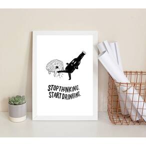 Quadro Decorativo Stop Thinking Start Drinking 45X34Cm Vidro O Quadro Decorativo Stop Thinking Start Drinking é perfeito para decorar qualquer ambiente da sua casa ou escritório. Com medidas de 45x34cm A3 , ele se encaixa perfeitamente em paredes vazias, trazendo um toque de personalidade e estilo. Esse quadro é produzido com material de alta qualidade. O papel utilizado é fotográfico brilhante, garantindo uma resolução incrível. Além disso, ele acompanha vidro para proteção da imagem, garantindo que sua decoração dure por muito tempo. A moldura é feita em madeira maciça na cor preta, proporcionando um acabamento elegante e durável. O quadro também vem com pendurador, facilitando a sua fixação na parede. Tudo pensado para tornar a sua experiência ainda melhor. A limpeza do quadro é simples e prática. Basta utilizar um pano seco ou um espanador para remover qualquer poeira acumulada. Assim, você mantém seu quadro sempre bonito e conservado. Com de 3 meses, esse quadro é uma ótima opção para presentear alguém especial ou para complementar a decoração do seu próprio ambiente. Deixe sua parede mais bonita e cheia de personalidade com o Quadro Decorativo Stop Thinking Start Drinking Marca: Não Informado