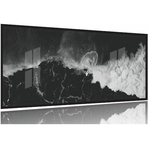 Quadro Surf Preto E Branco Onda Praia Sala Quarto 130x60 Moldura Preta 2x2