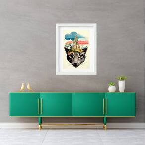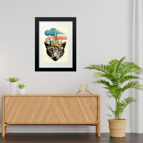 Quadro Surrealista Colagem Onça - 60x48cm - Cor: Moldura Preta