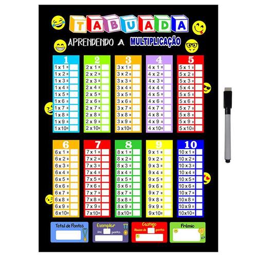 Contém: 1 Tabuada 40x29cm 1 Caneta para quadro branco com apagador e imã na tampa Marca: Não Informado