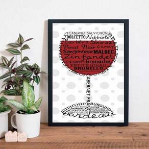 Quadro taça de vinho nomes uvas 24x18cm Moldura: madeira preta Informações do produto tire todas as suas dúvidas no descritivo abaixo: decoração para quarto, sala, cozinha, escritório, área gourmet e muito mais. Chega de paredes vazias medidas - cada peça tem 24x18cm a5 . Material do papel - papel fotográfico brilhante de altíssima resolução acabamento - todos os quadros são acompanhados de uma película de acetato para proteção da imagem. - os quadros são embalados de forma segura com plástico bolha com camada dupla de acordo com o tamanho dos quadros. - de 3 meses. Meu quadro chegou. Como posso fixá-lo Você precisa apenas de um martelo e um prego, pois os quadros já vão acompanhados de penduradores. Esta é a forma mais indicada. Caso prefira, você pode utilizar uma fita dupla face neste caso, sugerimos de alta qualidade para evitar que descole e seu quadro caia . Como posso limpar meu quadro A limpeza é feita como um móvel comum da sua casa. Apenas um pano seco ou espanador são suficientes para tal Marca: Não Informado