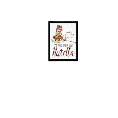 Quadro te amo mais que nutella 24x18cm - com vidro Moldura: madeira preta Informações do produto Decoração para quarto, sala, cozinha, escritório, área gourmet e muito mais. Chega de paredes vazias Medidas - cada peça tem 24x18cm a5 . Material do papel - papel fotográfico brilhante de altíssima resolução acabamento - todos os quadros são acompanhados de vidro para proteção da imagem. - moldura em madeira maciça na cor preta e pendurador . - os quadros são embalados de forma segura com plástico bolha com camada dupla de acordo com o tamanho dos quadros. - de 3 meses. Meu quadro chegou. Como posso fixá-lo Você precisa apenas de um martelo e um prego, pois os quadros já vão acompanhados de penduradores. Esta é a forma mais indicada. Como posso limpar meu quadro A limpeza é feita como um móvel comum da sua casa. Apenas um pano seco ou espanador são suficientes para tal Marca: Não Informado Ean: 7895145446393