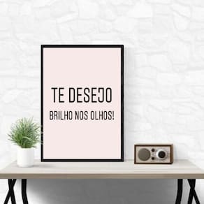 Quadro te desejo brilho nos olhos 45x34cm Cor: moldura branca Informações do produto tire todas as suas dúvidas no descritivo abaixo: decoração para quarto, sala, cozinha, escritório, área gourmet e muito mais. Chega de paredes vazias. Medidas - cada peça tem 45x34cm a3 . Material do papel - papel fotográfico brilhante de altíssima resolução acabamento - todos os quadros são acompanhados de uma película de acetato para proteção da imagem. - os quadros são embalados de forma segura com plástico bolha com camada dupla de acordo com o tamanho dos quadros. - de 3 meses. Meu quadro chegou. Como posso fixá-lo Você precisa apenas de um martelo e um prego, pois os quadros já vão acompanhados de penduradores. Esta é a forma mais indicada. Caso prefira, você pode utilizar uma fita dupla face neste caso, sugerimos de alta qualidade para evitar que descole e seu quadro caia . Como posso limpar meu quadro A limpeza é feita como um móvel comum da sua casa. Apenas um pano seco ou espanador são suficientes para tal Marca: Não Informado