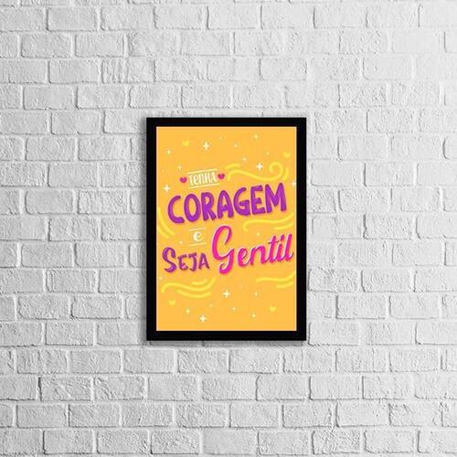 Quadro tenha coragem e seja gentil 45x34cm - com vidro Moldura: madeira preta Informações do produto tire todas as suas dúvidas no descritivo abaixo: decoração para quarto, sala, cozinha, escritório, área gourmet e muito mais. Chega de paredes vazias medidas - cada peça tem 45x34cm a3 . Material do papel - papel fotográfico brilhante de altíssima resolução acabamento - todos os quadros são acompanhados de vidro para proteção da imagem. - moldura em madeira maciça na cor preta e pendurador . - os quadros são embalados de forma segura com plástico bolha com camada dupla de acordo com o tamanho dos quadros. - de 3 meses. Meu quadro chegou. Como posso fixá-lo Você precisa apenas de um martelo e um prego, pois os quadros já vão acompanhados de penduradores. Esta é a forma mais indicada. Como posso limpar meu quadro A limpeza é feita como um móvel comum da sua casa. Apenas um pano seco ou espanador são suficientes para tal